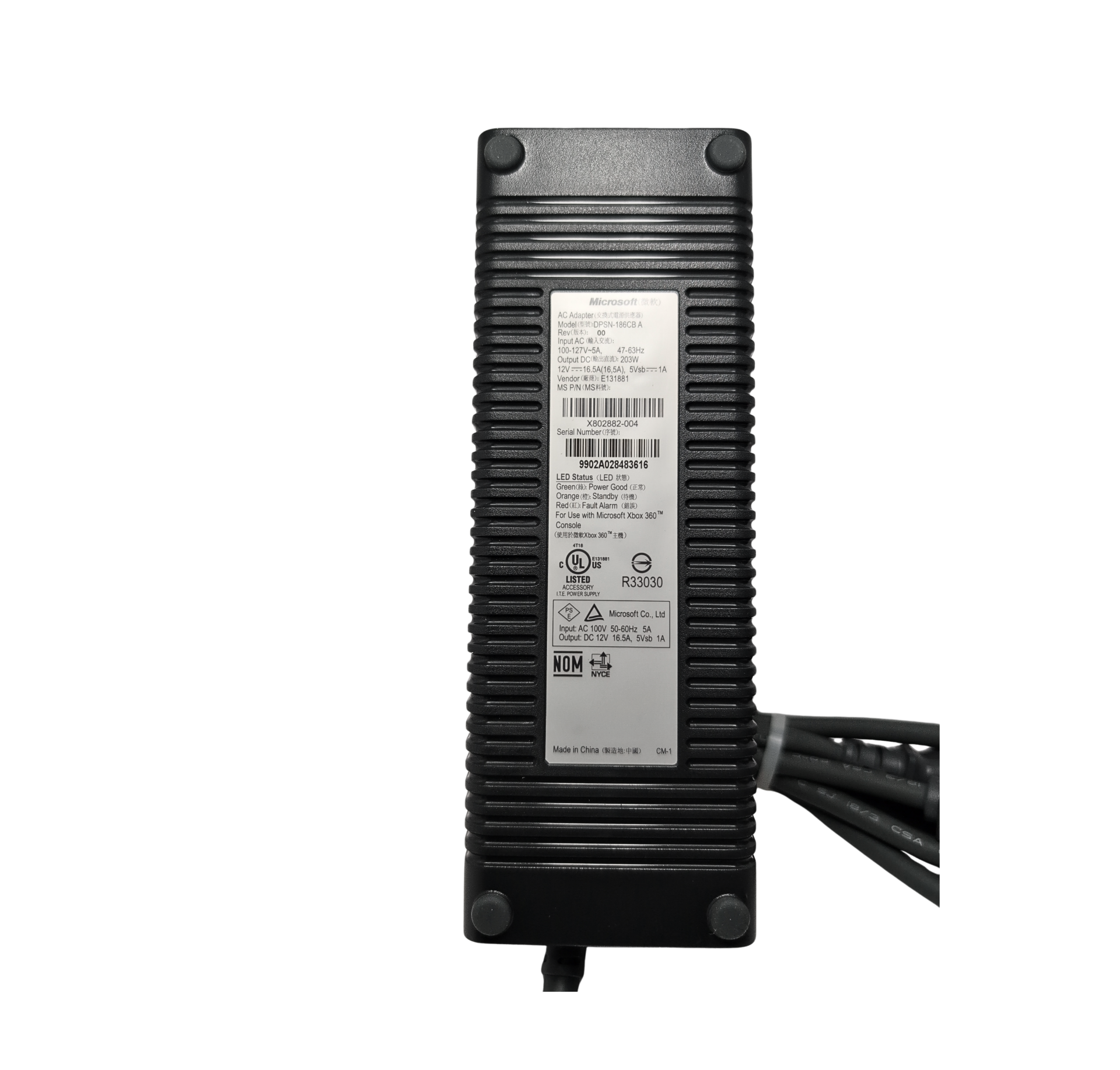 Official Xbox 360 Power Supply Brick 203W DPSN-186CB A + AC Cable – Microsoft OEM