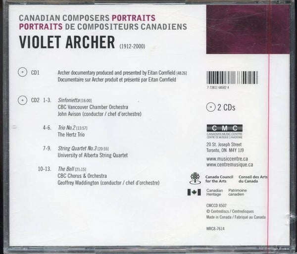 Violet Archer Canadian Composers Portraits 2CD set New Factory Sealed on Centrediscs. Excellent title for Canadian classical and composer collection buyers. Please review photos for condition.