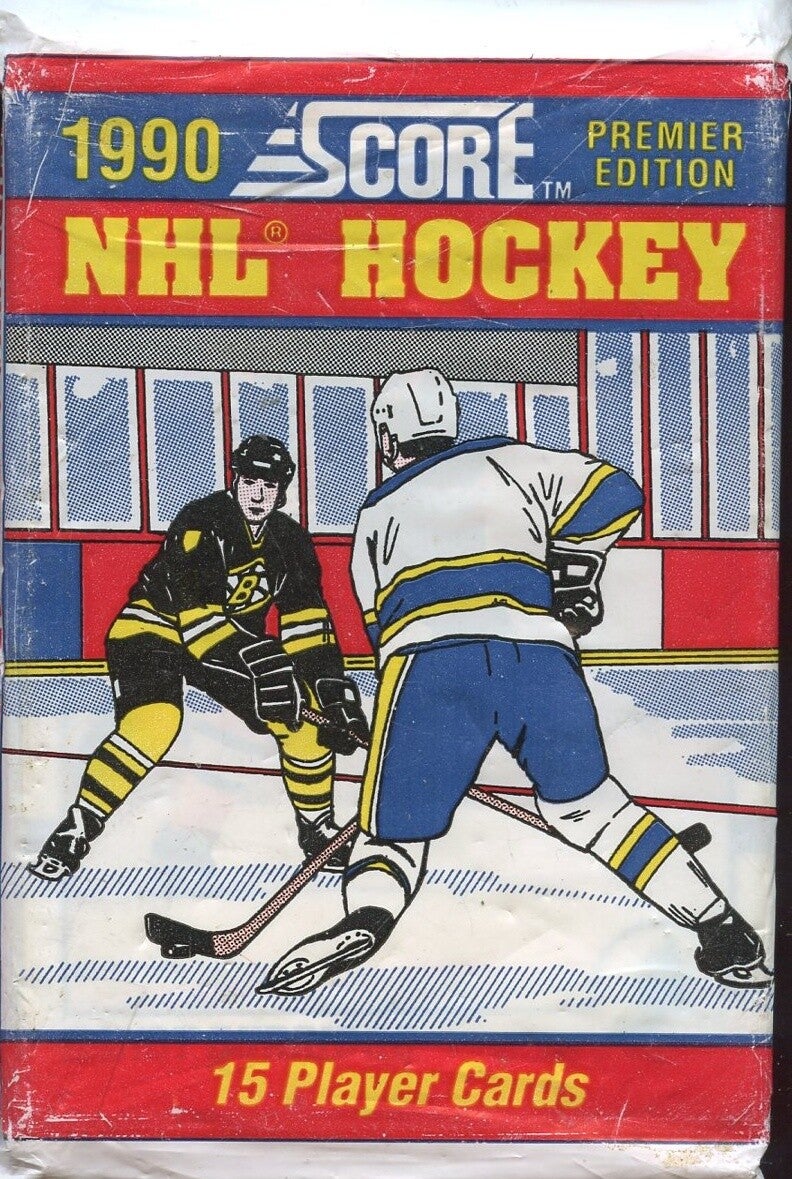 Sealed vintage 1990 Score NHL Hockey Premier Edition pack with 15 player cards. Nice unopened pack for hockey card collectors and wax pack lots.