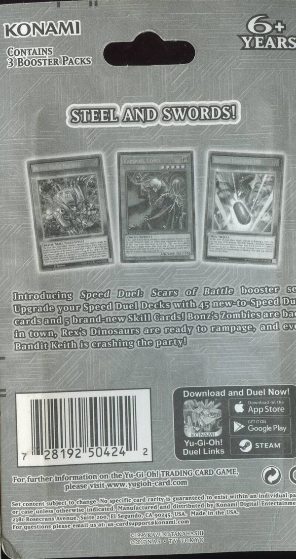 Brand new sealed Yu-Gi-Oh! Speed Duel: Scars of Battle 1st Edition blister. Great sealed item for Yu-Gi-Oh collectors or Speed Duel fans. Please note the outer cardboard shows some shelf wear from storage.