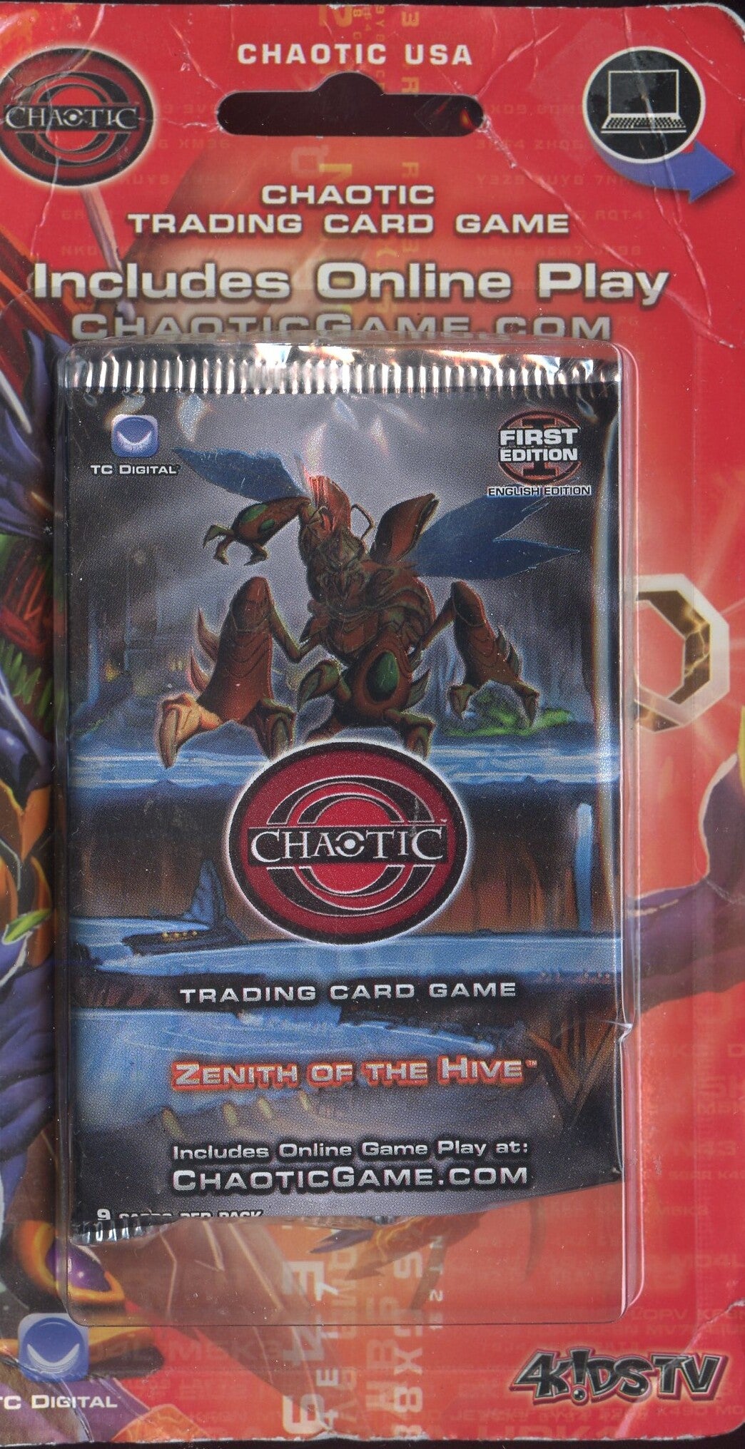 Brand new sealed Chaotic Zenith of the Hive 1st Edition blister pack. Includes 9 cards per pack. Nice sealed Chaotic piece for collectors. Please note the outer cardboard has visible bends and wear from age/storage.