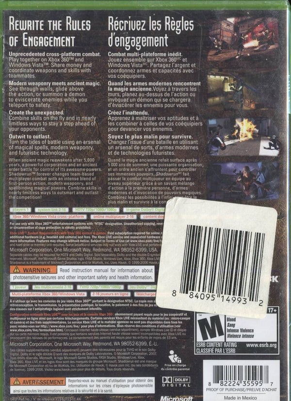 Brand new factory sealed Shadowrun for Xbox 360. NTSC version in original case. Great pickup for Xbox 360 collectors and fans of sci-fi shooters. Please review photos for overall package condition and any light shelf wear to the outer wrap.