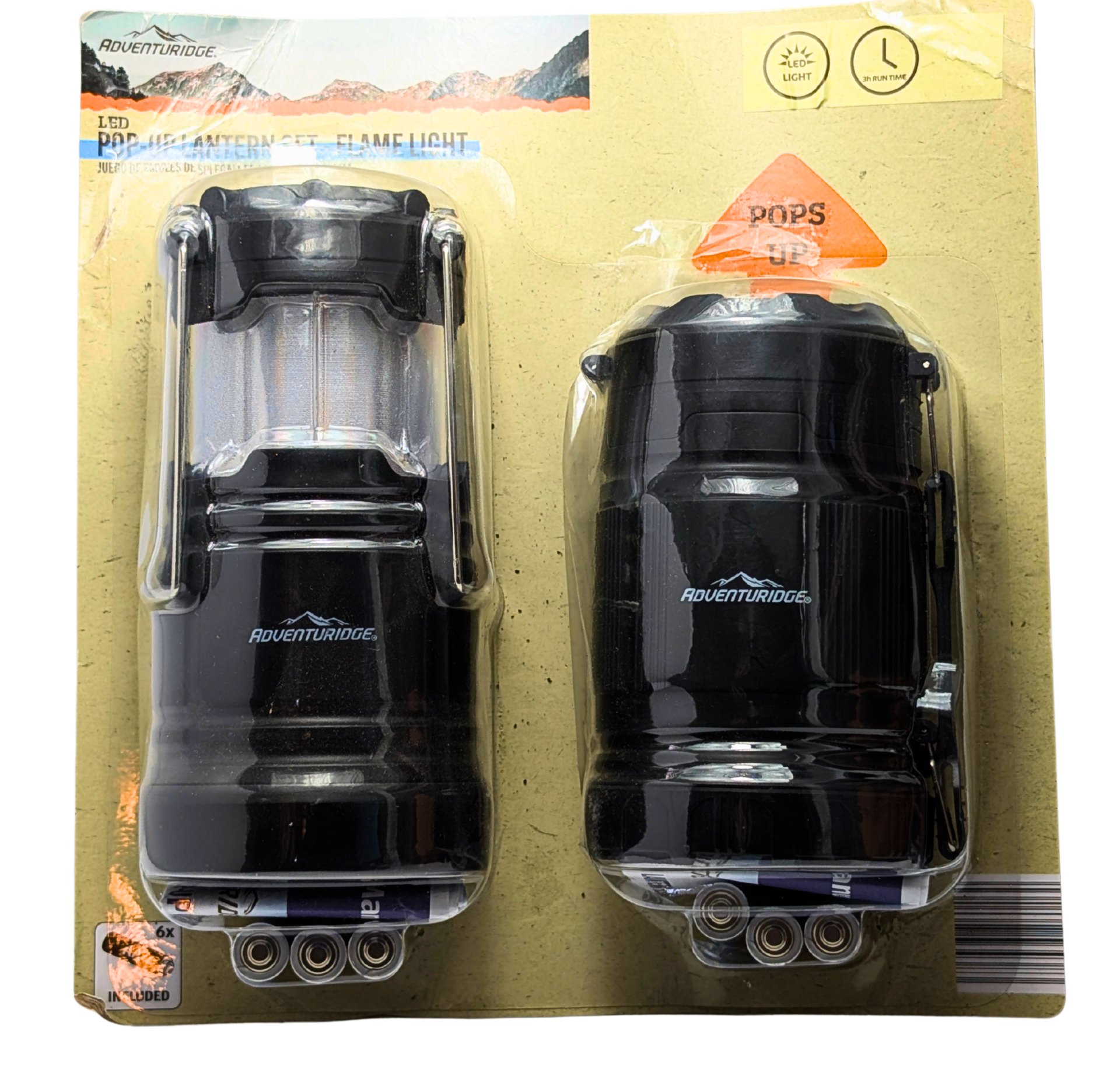 Handy set of 2 Adventuridge LED pop-up lanterns, great for camping, power outages, emergency kits, or outdoor use.